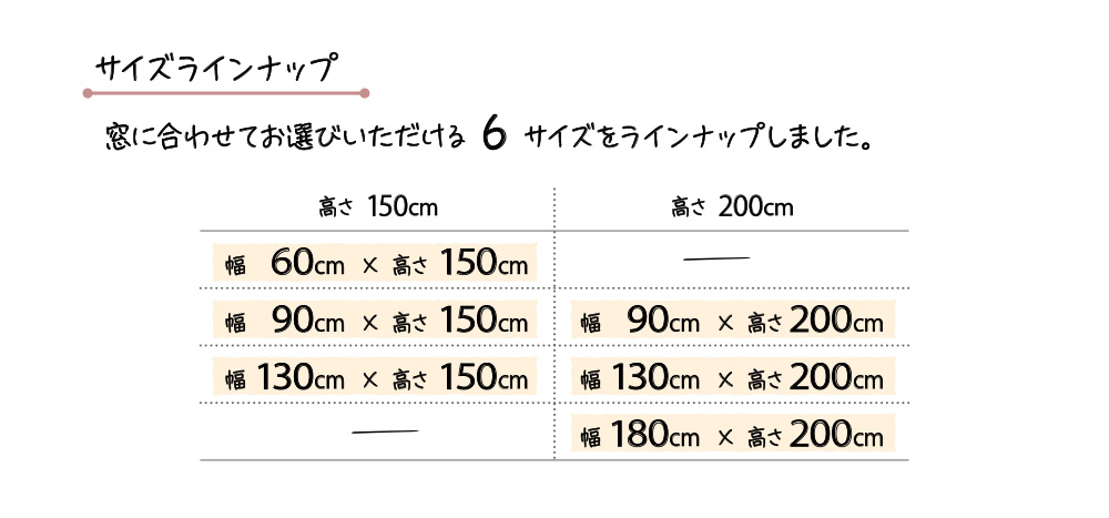 高さ/幅 60㎝ 90㎝ 130㎝ 180㎝